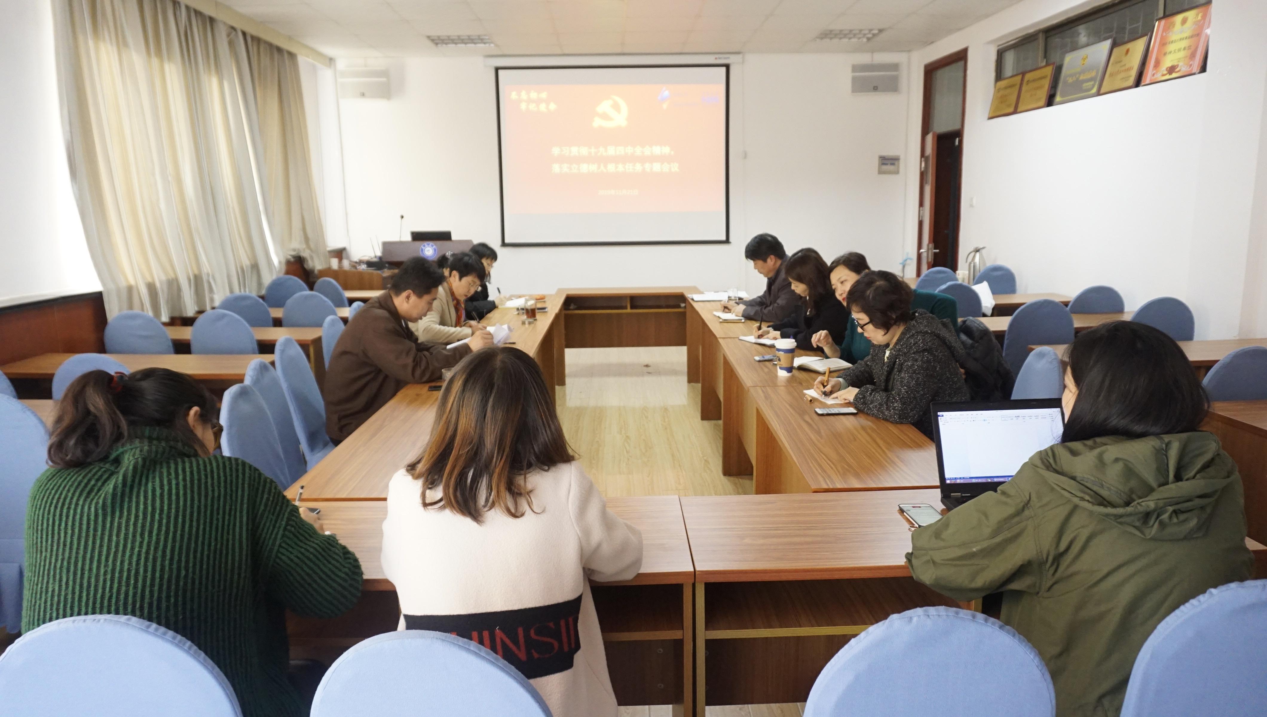 11月21日下午,beat365 官方网站党委理论中心组围绕“学习贯彻十九届四中全会精神,落实立德树人根本任务”专题进行“不忘初心、牢记使命”主题教育第四次集中学习研讨。院党委书记王传永主持学习会。院党委领导班子、各支部书记、各办主任、全体辅导员参加了学习研讨。