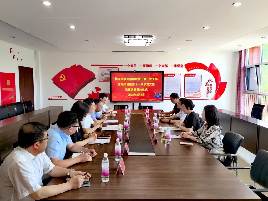 签约仪式由城阳区第十一中学校长吕廷良主持。双方党支部书记首先对各自基层党建概况和党建文化进行了全面介绍,使共建双方加深了对彼此的了解与认识,并就下一步双方党支部进一步共建具体安排进行了沟通。