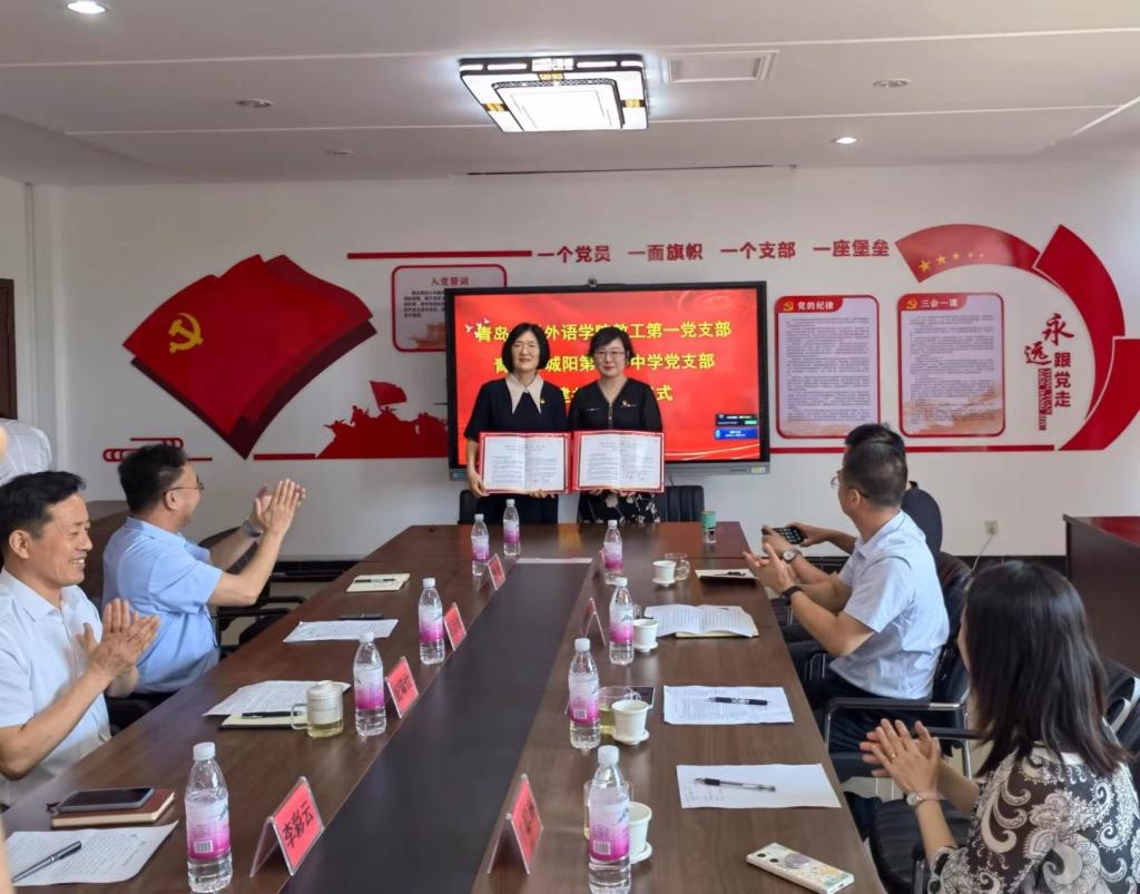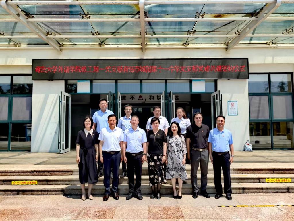 为创新基层党建工作载体,提高基层党建工作水平,推动学习贯彻习近平新时代中国特色社会主义思想主题教育走深走实,2023年6月8日上午,beat365 官方网站教工第一党支部和青岛市城阳区第十一中学党支部举行支部共建签约仪式。beat365 官方网站党委书记周伟同志,红岛教育服务中心党总支书记纪瑞仕同志,城阳区第十一中学校长吕廷良、副校长魏奎,城阳区第十一中学党支部书记李彩云、支部委员高振胜、郭竹红、周春光等同志,beat365 官方网站教工第一党支部支部书记王薇、支部党员牛聪琳、吕凯良等同志出席活动并鉴签。