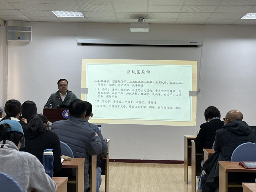 在讲座中,陈教授首先介绍了区域与国别研究的概念、区域性涉及到的范畴以及不同学科角度的区域国别研究。随后,陈靓教授分享了他在区域与国别研究领域的选题和论证方法。他强调了选题的重要性,提醒大家在选题时要多关注其他学科的项目申报的主题和研究方法,这可能会对自己的研究领域有所启发。同时,要根据自身兴趣和专业背景进行深入思考。此外,陈教授还强调了跨学科合作的重要性,并从文学、语言学、翻译以及其他人文社科的视角,进行区域与国别研究,印证了跨学科对该领域研究的可行性。跨学科的方法论不仅可以帮助我们从多角度、多层次深入探讨问题,还能另辟蹊径,助力学者们开阔视野。