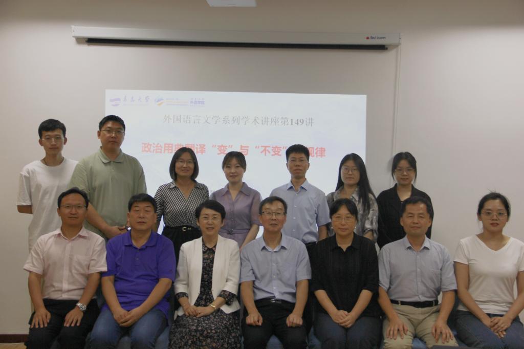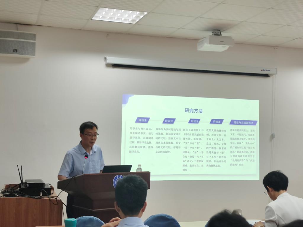 2023年9月18日上午8:30—11:00,苏州大学特聘教授,博士生导师,翻译学科带头人,天津外国语大学校外博士生导师,江苏省高校重点研究基地主任,中国英汉语比较研究会理事,典籍英译专业委员会常务理事,中央编译局国家高端智库重点研究方向核心团队成员陈大亮教授应邀为beat365 官方网站师生作了题为《政治用典翻译“变”与“不变”的规律》的学术讲座。本次学术讲座由beat365 官方网站卞建华院长主持,beat365 官方网站师生30余人参加了此次讲座。