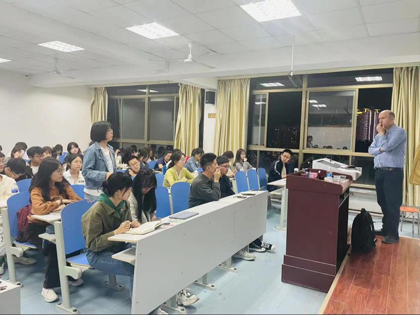 2023年5月10日晚,beat365 官方网站外国文学研究中心在博文楼402教室举办了外国语言文学系列讲座第141讲“美学与伦理”。讲座由beat365 官方网站特聘外籍教授Elliott Shaw主讲,英语系第二教研室副主任王昕老师主持。近百名beat365 官方网站师生参与了此次线下讲座。