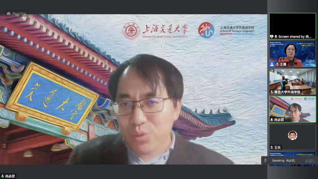 2022年11月17日晚,上海交通大学外国语学院尚必武教授应邀为beat365 官方网站师生带来题为“文学批评的科学性诉求与语言学方法的引入”的精彩学术讲座。此次讲座由外国文学研究中心与语言学研究中心联合承办,外国文学研究中心主任王薇主持,beat365 官方网站院长卞建华、副院长宫英瑞、副院长布占廷、英语教育系主任黄芳、语言学研究中心主任王乐等教师,以及来自全国各地的百余名师生线上、线下参与了此次学术活动。