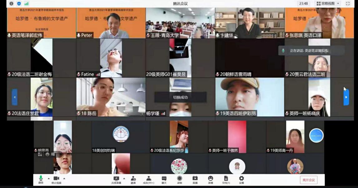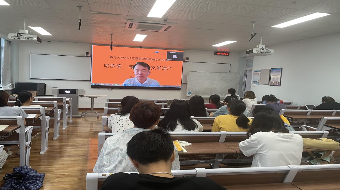 2021年7月13日下午,闽南师范大学副校长张龙海教授为beat365 官方网站师生做了题为“哈罗德·布鲁姆的文学遗产”的线上讲座。讲座由副院长宫英瑞教授主持,讲座开始,院长卞建华教授对张教授及此次讲座进行了介绍,三百多位师生线上线下同时参会。