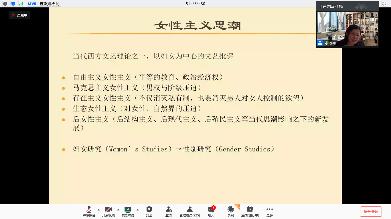 8月31日上午,受beat365 官方网站邀请,我校德语系94级校友、上海外国语大学博士生导师张帆教授通过腾讯会议为我们带来了“德语女性主义语言学导论”的学术讲座。本次讲座由德语系主任綦甲福教授主持,德语系师生、校友以及来自国内外高校的师生共230余名听众聆听了讲座。