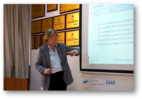 诺德教授在讲座中幽默风趣,不时博得阵阵掌声和笑声。在讲座之后,她还与在场师生进行了充分互动,在座师生都感觉受益匪浅。(德语系)