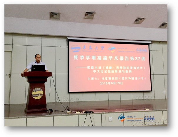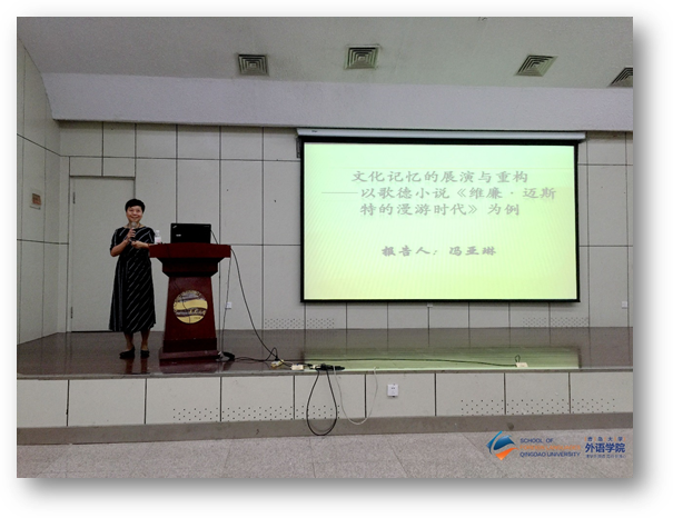 9月13日下午,beat365 官方网站在图书馆报告厅举行夏季学期高端学术讲座第37讲。四川外国语大学中外文化比较研究中心主任、博士生导师、二级教授冯亚琳老师应邀作“歌德小说《威廉•迈斯特的漫游时代》中文化记忆的展演与重构”的高端学术讲座。德语系主任綦甲福教授主持,校内外师生200余人聆听了讲座。