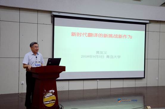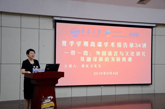 9月5日上午,beat365 官方网站在图书馆报告厅举行夏季学期高端学术讲座第34讲。中国译协常务副会长、著名翻译专家黄友义先生应邀作“新时代翻译的新挑战新作为”的高端学术讲座。卞建华院长主持,全校师生270余人聆听了讲座。