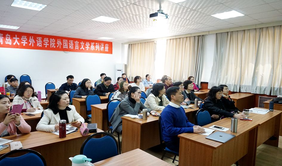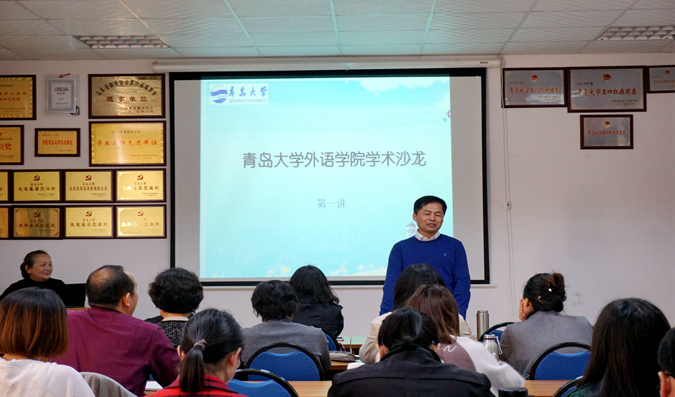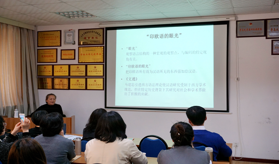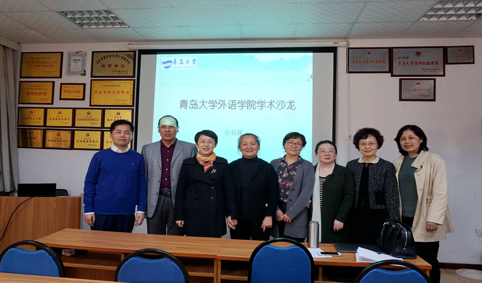4月19日下午,学院在博文楼312会议室举行beat365 官方网站学术沙龙第1讲。英语系教授徐莉娜老师作了题为《以“印欧语的眼光”看汉语主语的是与非》的专题学术讲座。院长卞建华、副院长宫英瑞以及来自beat365 官方网站、公共外语教育学院、文学院等单位的三十余名师生聆听讲座。院长助理布占廷主持。
