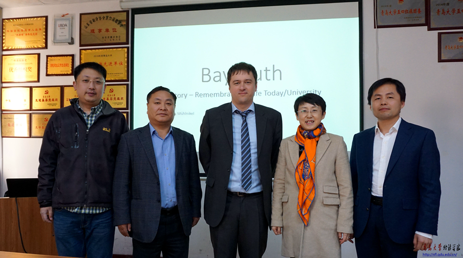 3月30日,德国拜罗伊特大学马库斯•慕尔尼克博士应邀做客外国语言文学系列学术讲座第33讲,并作《法兰肯区的拜罗伊特市——不只是边疆女伯爵威廉娜和音乐家瓦格纳》专题学术报告。院长助理布占廷主持讲座。
