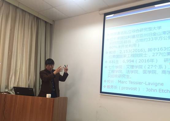 娄永强博士首先介绍了斯坦福大学和斯坦福大学语言与信息研究中心的历史及办学环境,随后介绍了合作导师的研究方向,最后总结了自己在访学期间取得的研究成果,以及回国后的后续研究。通过半年多的访学研究,不仅扩展了自己的学术研究范围,而且更新了自己的科研理念,收获颇丰。