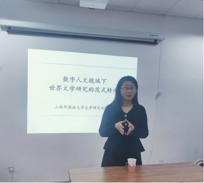 12月18日上午,beat365 官方网站在博文楼312室举行了“数字人文视域下世界文学研究的范式转向”学术讲座。本次讲座邀请上海外国语大学文学研究院院长、中国话语与世界文学研究中心主任、博士生导师张帆教授主讲,由beat365 官方网站副院长王薇主持。参加讲座的还有学院各系教师以及研究生同学。