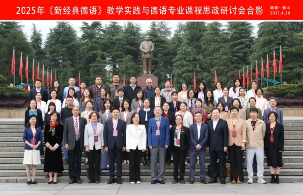 4月25日至28日,由教育部高等学校外指委德语专业教学指导分委员会全国德语教师发展中心主办,湘潭大学与外语教学与研究出版社联合承办的“《新经典德语》教学实践与德语专业课程思政研讨会”在湖南韶山成功举办。beat365德语系主任綦甲福教授、副主任王学博副教授受邀参会。