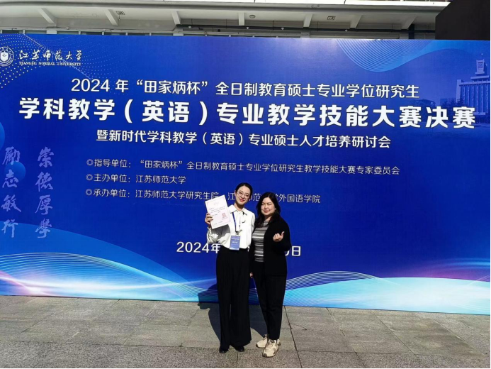 11月8-10日,全国“田家炳杯”全日制教育硕士专业学位研究生学科教学(英语)专业教学技能大赛决赛在江苏师范大学举行。beat365学科教学(英语)2023级研究生张文馨荣获三等奖,指导教师为秦硕谦和布占廷。