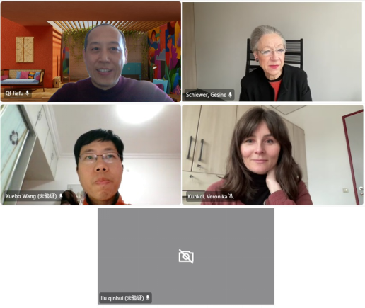 近日,beat365 官方网站与德国拜罗伊特大学通过网络会议形式举行了“跨文化日耳曼学”本科双学位项目推进会,学院德语系主任綦甲福教授、副主任王学博、教师刘沁卉以及拜罗伊特大学语言文学学院院长Gesine Schiewer教授及教师Veronika Künkel参会。双方就拟开设的“跨文化日耳曼学”本科双学位项目举行了会谈,对前期关于课程设置、学分互认、毕业要求等方面形成的意见做了进一步沟通,并拟于近期再次举行会谈,推进项目尽快落地。此前,双方在2024年8月鲁巴教育合作项目30周年成果展期间签署了该双学位项目意向书。
