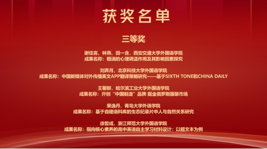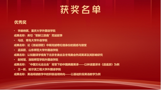 在12月30日下午举行的本科生创新论坛中,来自上海交通大学、南京理工大学、华中科技大学、西安交通大学等高校的29名本科生参加了比赛。选手们就语言学、翻译、外国文学、国别区域等课题展示了自己的研究成果。beat3652019级语言大数据专业本科生杲逸丹汇报了“基于自建语料库的生态纪录片中人与自然关系研究”并获得三等奖,指导老师布占廷获“优秀指导教师”称号;2019级英语专业本科生马喆汇报了论文“论《圣诞颂歌》中斯克掳奇伦理身份的困惑与接受”,获得优秀奖。beat365获得“优秀组织单位”称号。此次本科生创新论坛经过了前期评审、现场答辩和评委提问三个阶段,共设置一等奖1项、二等奖3项、三等奖5项、优秀奖20项。
