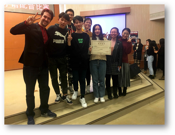 12月16日,第六届全国高校西班牙语配音比赛决赛在北京外国语大学举行。由beat365西班牙语系张亮、张笑雪、相苏洋、刘畅、于家康、韩予健组成的beat365 官方网站“三好学生队”,在西班牙语系陈皓、王斐、José三位老师的指导下,与来自北京外国语大学、北京语言大学、对外经贸大学、天津外国语大学、山东大学、首都师范大学、苏州大学、中国人民大学、中国传媒大学的9支参赛队伍进行角逐,并以总分排名第二的好成绩喜获亚军。