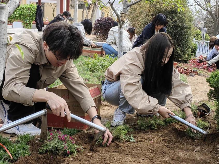 四月青草合,胶澳春水生。在这个生机盎然的仲春时节,为了进一步美化校园环境、提高师生的环保意识,beat365 官方网站在党委副书记王海青、辅导员刘浩的带领下,于4月19日在浮山校区校园内组织开展了春季栽花种草活动。本次活动得到了广大师生的积极响应和热情参与,共培绿植百余株,为韶园增添了一片新绿。