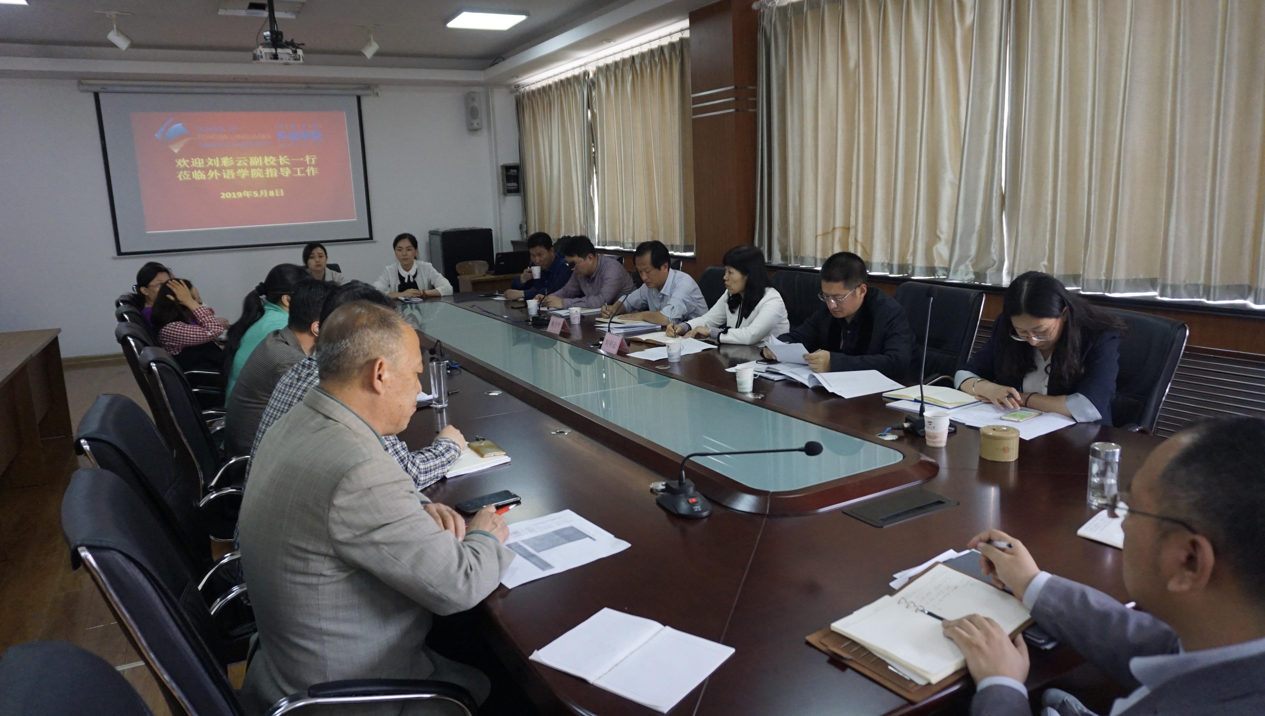 5月8日下午,刘彩云副校长在安全保卫处处长陈崇研、学生处副处长周伟的陪同下来beat365 官方网站重点调研学生安全管理与考研就业工作。学院党政班子成员、系主任与辅导员参加了会议。