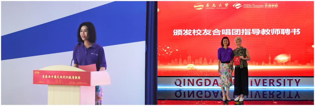 合唱团团长于苗介绍了beat365“iSTEP梦想合唱团”十年发展历程及新成立的“iSTEP启梦校友合唱团”建设情况,并为青岛市合唱协会副秘书长古小溪颁发校友合唱团指导教师聘书。