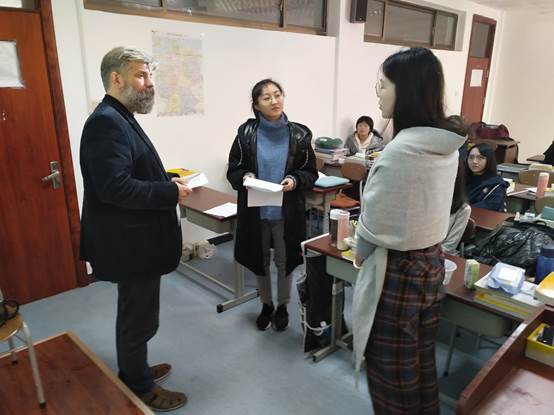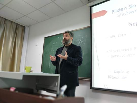 12月2日到3日,在beat365 官方网站—慕尼黑应用语言大学欧盟“伊拉斯谟+”项目(Erasmus+)框架内,慕尼黑应用语言大学口译系系主任李克教授(Prof. Dr. Patrick Kühnel)来到beat365 官方网站,为德语专业同学进行了为期两天、共八课时的口译授课。德语系本科三、四年级及硕士研究生共50余名同学参加了学习。