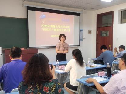 7月4日上午,beat365 官方网站 “师苑杯”师范生风采大赛在博文楼308成功举行。本次比赛邀请青岛洮南路小学王璐瑶老师、青岛九中匡文超老师、青岛四中陆洋老师和beat365娄永强副院长、布占廷副院长、英语教育系副主任王进福老师、黄芳教授、宋蕾副教授、徐平老师、施慧老师一起担任评委。beat365 官方网站王乐教授担任特约嘉宾,beat365 官方网站部分本科生和研究生前来观摩学习。比赛中选手们表现优异,充分展现了beat365 官方网站英语师范生良好的专业素养和蓬勃的精神风貌。