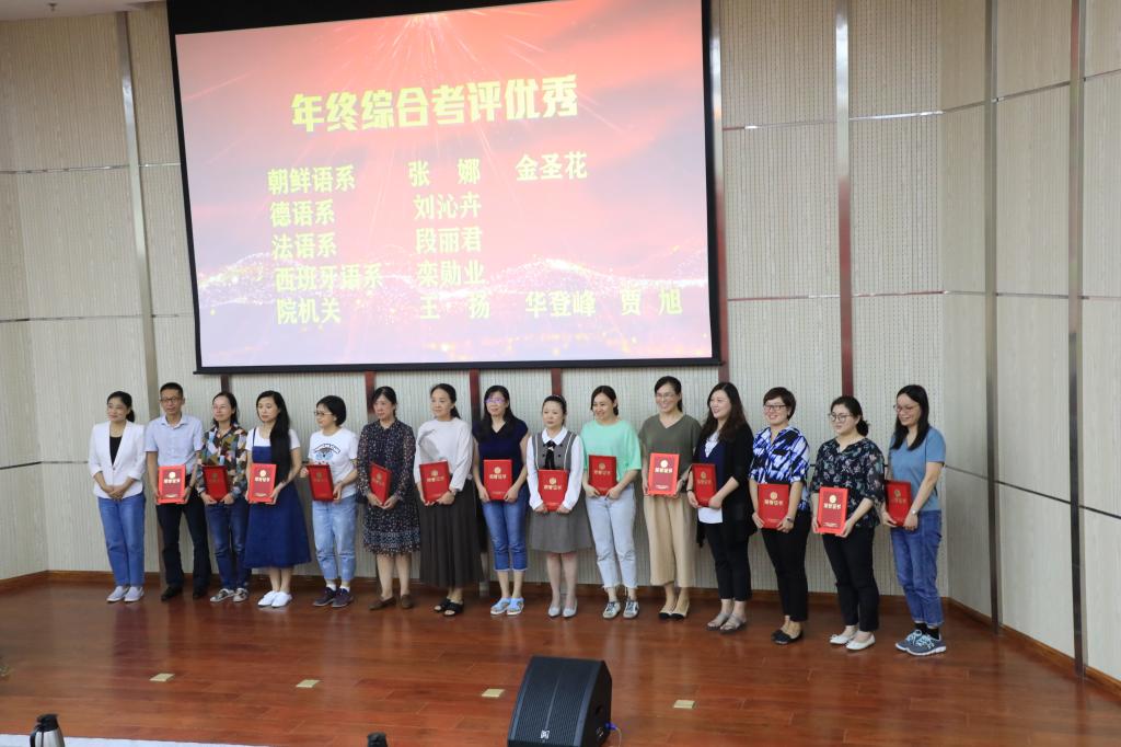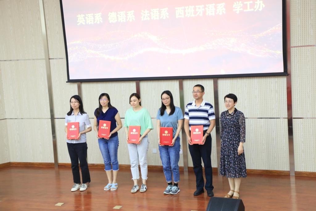 院党委副书记王海青宣读了《beat365 官方网站关于表彰2019年度工作先进集体和先进个人的决定》,对英语系等5个工作先进集体,王薇等19名综合考核优秀个人,马一凡等23名工作先进个人和王乐等6名优秀共产党员进行表彰奖励。