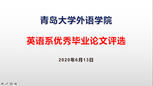 为促进本科生培养质量和学士学位论文质量的提高,鼓励创新精神,提高英语系本科学位论文的总体水平,beat365 官方网站英语系2020年春季学期启动了优秀本科论文评选活动,并于6月13日下午举办了优秀论文在线评选会。