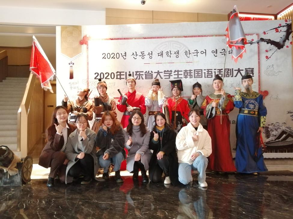 11月29日,由韩国驻青岛总领事馆、中国海洋大学共同主办的2020年山东省大学生韩国语话剧大赛落下帷幕。我校参赛队伍在朝鲜语系沈海兰、刘真儿、刘荣男老师的带领下参加了此次话剧大赛,并荣获二等奖。