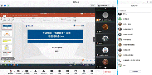 2021年5月12日晚7点,beat365 官方网站在线上举行第七届中国国际“互联网+”大赛学院专题培训会。会议由学院团委副书记王扬主持并进行了赛事解读,本科生王诗存、刘开心、研究生任旭晨和王思圆依次分享了大赛经验。学院党委副书记王海青、院长助理曹杉、学院创新创业委员会委员、部分系主任、指导教师以及两百五十余名学生共同参加了本次培训。