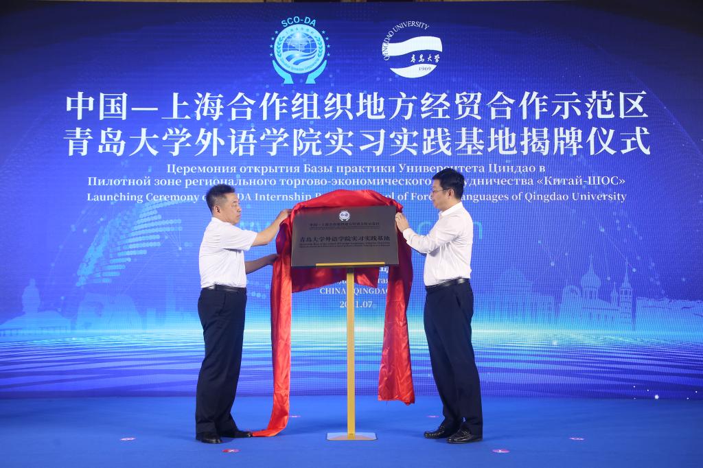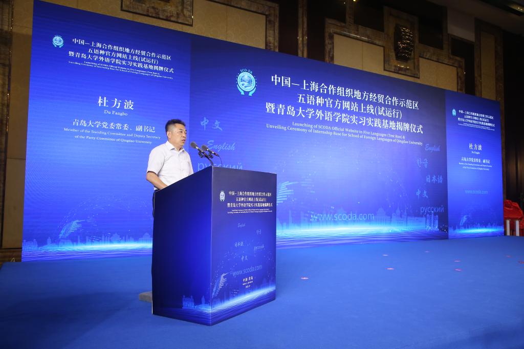 7月12日上午,上合示范区五语种官方网站上线(试运行)暨beat365 官方网站实习实践基地揭牌仪式在胶州喜来登大酒店隆重举行。校党委副书记杜方波、上合示范区党工委委员、管委会副主任孟庆胜、beat365 官方网站院长卞建华出席仪式并致辞,beat365 官方网站党委书记王传永、副院长娄永强、院长助理曹杉及beat365 官方网站师生、上合管委会、上合示范区园区企业代表参加了仪式。仪式由上合示范区管委会综合部部长孙正永主持。