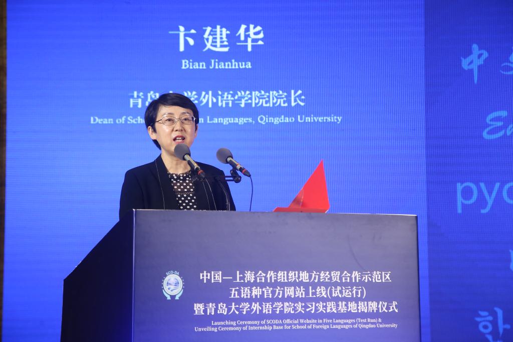 卞建华在致辞中提到,在上合示范区网站上线筹备工作中,beat365 官方网站教师带领部分研究生组成团队,圆满完成了日语、韩语网站的审编工作,保障了网站按时、顺利上线,充分体现了学院师生良好的专业素养和服务社会的责任与担当。未来,学院将依托学校综合性大学的优势,发挥英日韩德法西俄多语种特色,探索与上合示范区协同育人、共谋发展的合作路径。