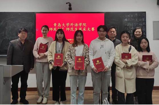 4月21日的决赛评委由校外、校内专家共同组成。青岛市小学英语教研员徐蓓贝、中学英语教研员武继国、高中英语教研员匡文超老师担任校外评审专家,beat365 官方网站娄永强、布占廷、黄芳、王进福、宋蕾、徐平老师担任校内评审专家。赛后,三位英语教研员老师针对同学们的教学设计、教学实施提出了具体的改进建议,并祝贺青大外院英语教育系学子在第九届山东省师范类高校学生从业技能大赛中再创佳绩,展现新时代英语师范生积极向上的教学面貌和过硬的英语教学技能。