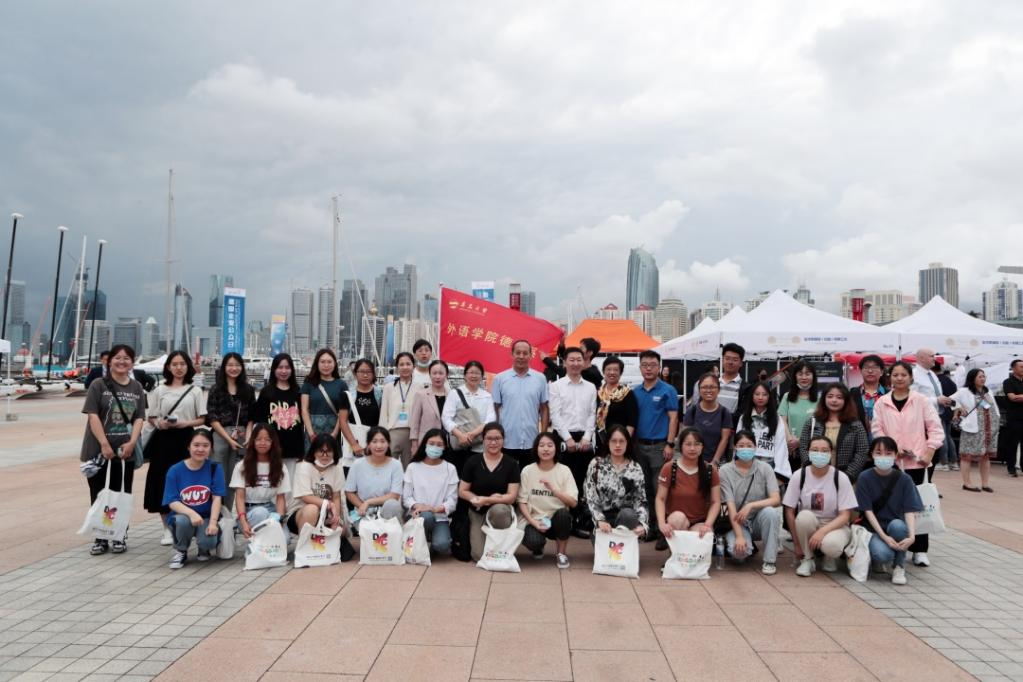 管委主任赵士玉(左一)出席公众日活动并与德语系师生合影
