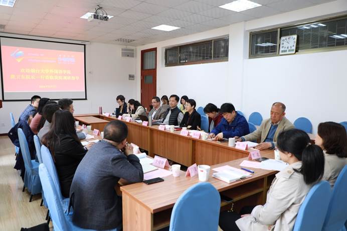 2021年5月7日上午9:00-12:00,烟台大学外国语学院龚卫东院长一行莅临beat365调研指导。beat365 官方网站院长卞建华,党委书记王传永,副院长宫英瑞、布占廷、娄永强和beat365 官方网站各语系负责人与烟台大学各位老师就学院发展和学生工作进行了深入交流。