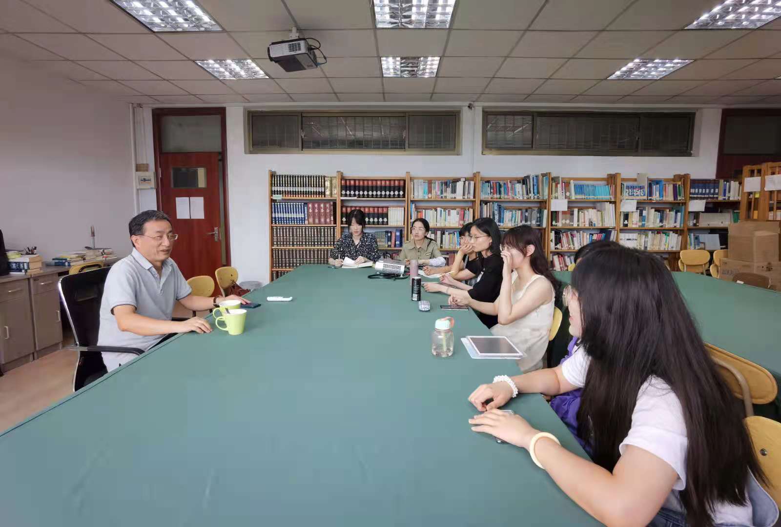同学们各自分享了自己目前比较感兴趣的论文研究题目,并与刘教授探讨了这些研究题目的价值与可行性,刘教授给出了自己的建议并给予同学们鼓励。他特别提到,《青岛全书》的重译虽然有难度,但会是一项很有价值的翻译实践。座谈的氛围轻松愉快,大家各抒己见,畅所欲言。