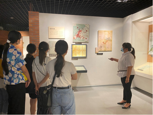 中德生态园调研参观结束后,师生乘大巴返回市区,来到青岛市档案馆。这里的二、三层展厅陈列着展现青岛城市历史与各方面发展的珍贵史料档案、实物展件、模型展件等。展柜中发黄的书页、地图和老照片,两名讲解员长达40分钟的细致讲解,将同学们带回了遥远的年代,从清朝末年青岛建制到德占胶州湾时期,从日占时期到国民政府统治时期,从青岛解放到新中国成立后青岛城市的快速发展,完成了一次充满历史沧桑感的时光之旅。同时,这也是同学们第一次近距离观看档案史料,很多展件引起了大家极大的兴趣,大家久久驻足、纷纷拍照。