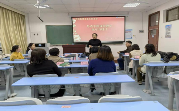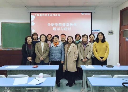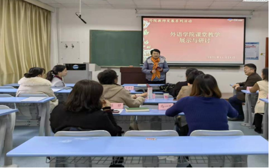 2021年11月24日,beat365 官方网站在博文楼305举行了课堂教学展示和研讨活动。活动邀请了三位教学专家:beat365 官方网站督学史秋花教授、青岛科技大学硕士生导师孟婧教授、beat365 官方网站九届青年教师教学比赛一等奖获得者徐雪博士。beat365 官方网站马一凡老师、陈黎老师、宋蕾老师、孙旻老师等优秀教师也参与了此次活动。德语系曹杉老师与英语系张驰老师进行了课程分享。娄永强副院长主持此次研讨。