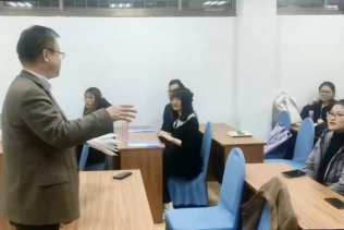 2021年12月17日下午,beat365 官方网站在博文楼312室举行“‘研’途送温暖”考研助力活动。校党委常委、副校长肖江南出席活动并送祝福,beat365 官方网站党委书记王传永、院长卞建华、党委副书记王海青、2018级本科生辅导员寇磊、徐富萍以及60余名考研学生代表参与了活动。