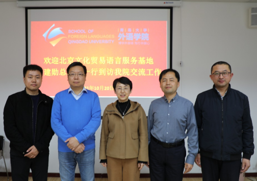 2021年10月20日下午,北京文化贸易语言服务基地总经理李建勋一行到beat365工作交流。beat365 官方网站院长卞建华,副院长宫英瑞、布占廷,英语系主任刑富坤教授参加了此次会议。