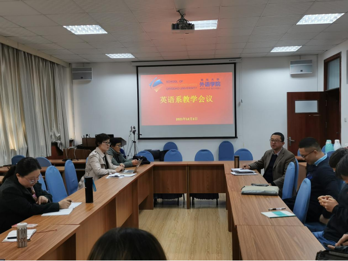 12月3日下午英语系召开本学期期中教学总结分析会,全系课程组负责人及各教研室主任参加,会议由系主任邢富坤主持。