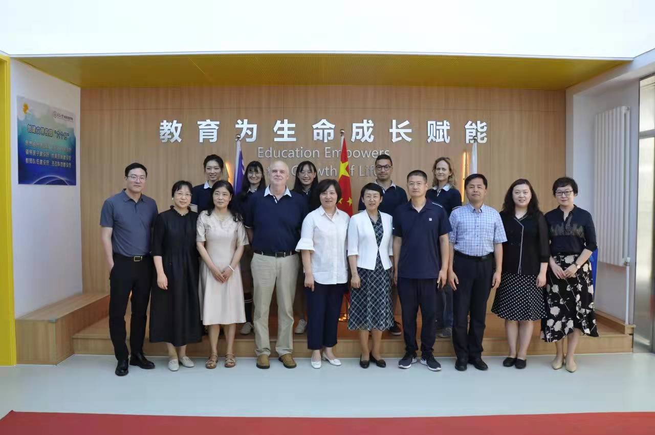 6月24日,beat365 官方网站一行8人调研青岛市市北区beat365 官方网站双语实验学校。院长卞建华、党委书记周伟、副书记王海青、副院长宫英瑞、布占廷,英语教育系系主任黄芳、副主任吕凯良、英语系副主任王薇,深入了解了该校的办学历史和优势特色。