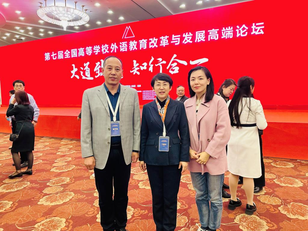 2023年3月25-26日,第七届全国高等学校外语教育改革与发展高端论坛在北京九华山庄举行。大会由北京外国语大学、教育部高等学校外国语言文学类专业教学指导委员会、教育部高等学校大学外语教学指导委员会与中国高等教育学会外语教学研究分会在北京联合举办。本届论坛以党的二十大精神为指引,以“大道致远,知行合一”为主题,旨在探讨外语教育现代化建设新路径,进一步推动外语教育高质量发展。beat365院长卞建华、德语系主任綦甲福、院长助理曹杉参加了本次论坛。