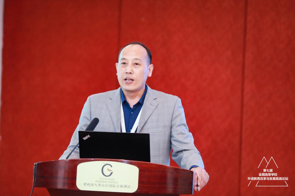 綦甲福主任在专题论坛五“多语种教育论坛”做了题为“学德语·译中国·做有德之人——beat365 官方网站德语专业课程思政建设举措”的报告,以beat365 官方网站德语专业翻译类课程思政建设为例,介绍如何将知识传授、能力培养和价值塑造融入人才培养方案与课程建设的实践经验。