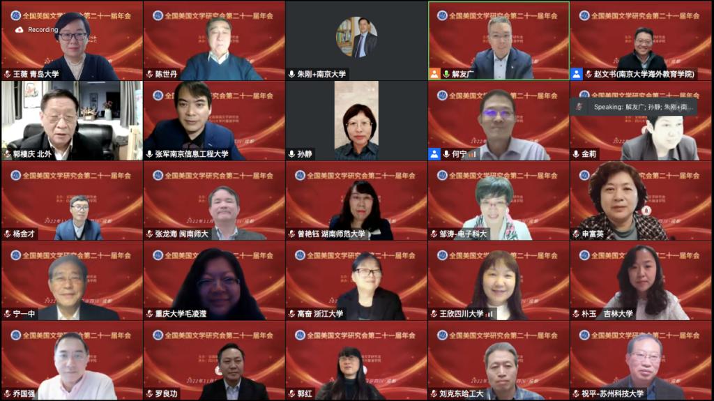 2022年11月6日,全国美国文学研究会第二十一届年会隆重举行。本届年会由全国美国文学研究会主办,四川大学外国语学院承办。会议聚焦美国文学与文化的跨界研究,包含7位专家的主旨发言、17个分会场研讨和20个研究生论坛。大会受到广泛关注,大会直播间观看人数达8700人次,腾讯会议出席人数满300人上限。来自全国24个省市的131所高校、研究所、出版社的354名专家、学者和研究生围绕大会主题展开学术研讨、共享学术盛宴。在本届年会期间,学会进行了理事会增改选工作,beat365 官方网站增选为学会理事单位,beat365王薇副教授当选为全国美国文学研究会理事。