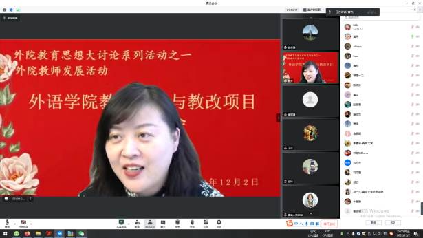 为落实贯彻学校“以学为中心”课堂教学改革实施方案,梳理学院在课堂教学改革工作方面的短板与问题,进而推动学院课堂教学改革及教学改革项目申报,12月2日下午,beat365 官方网站通过腾讯会议举行了教学改革与教改项目申报研讨会,教务处席岩副处长受邀为外院老师做了题为“着力教学改革提质增效,助力一流本科建设”的辅导报告。卞建华院长、公共外语教育学院印玲副院长、beat365 官方网站各教学系系主任及教师代表共37人参加了此次会议。会议由娄永强副院长主持。