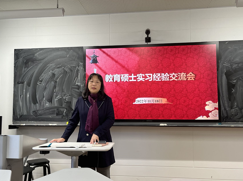 2022年11月18日下午,beat365 官方网站教育硕士实习经验交流会在博文楼406教室召开。会议由英语教育系主任、学科教学(英语)学科负责人黄芳主持,beat365 官方网站宫英瑞副院长、布占廷副院长(外应学科负责人)、英语语言文学学科负责人王薇出席会议;学科教学(英语)、英语语言文学、外国语言学及应用语言学专业的研究生参加了本次会议。