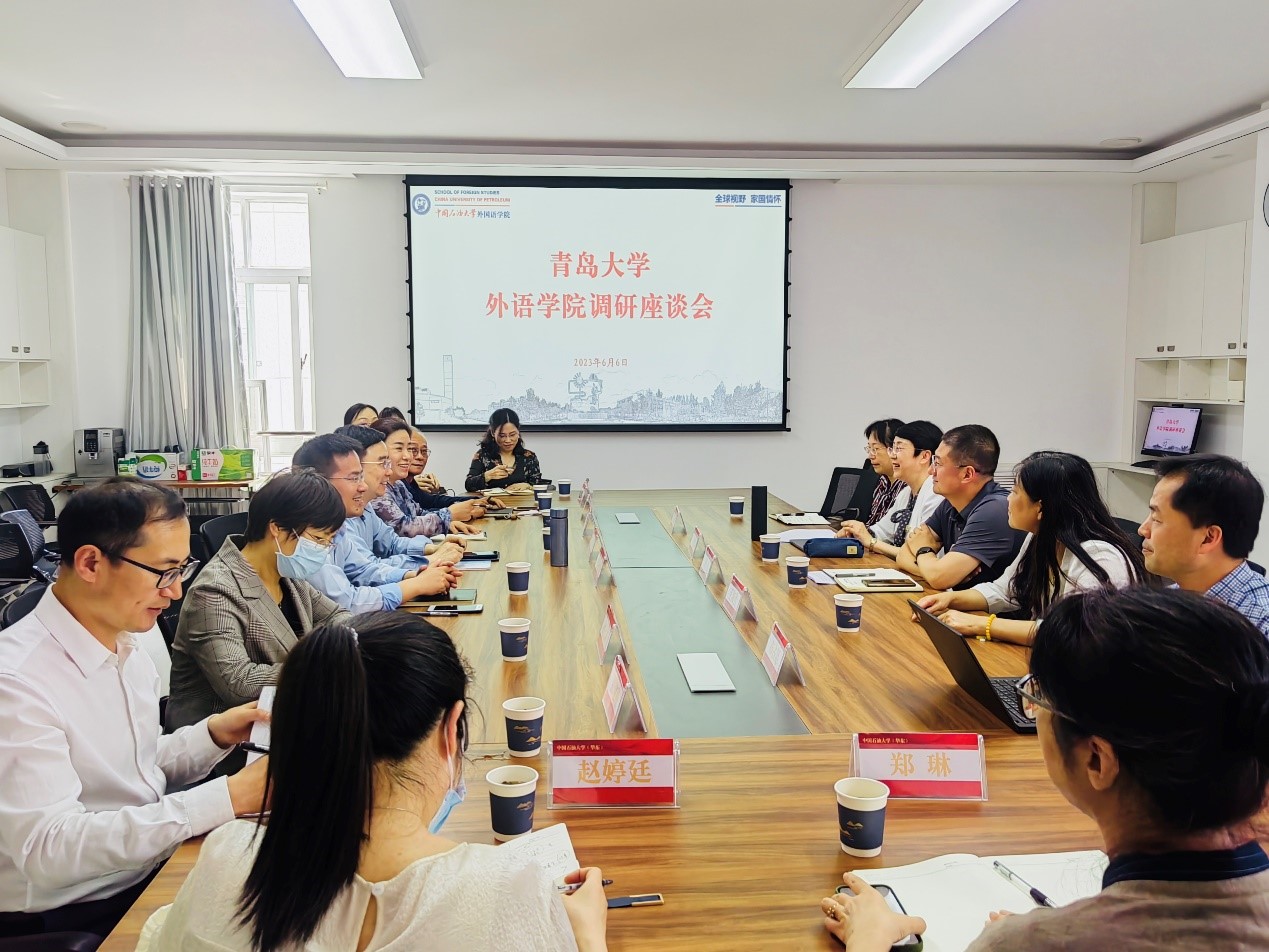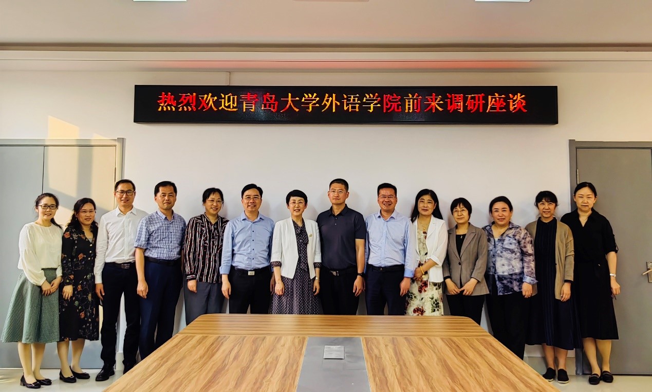 6月5日,beat365 官方网站一行五人赴中国石油大学(华东)外国语学院调研,参加调研的有卞建华院长、周伟书记、王海青副书记、宫英瑞副院长和布占廷副院长。中国石油大学(华东)外国语学院毛浩然院长、朱惠平书记、邹维忠副书记、孙大满副院长、郭月琴副院长、张建科副院长等参加调研座谈。