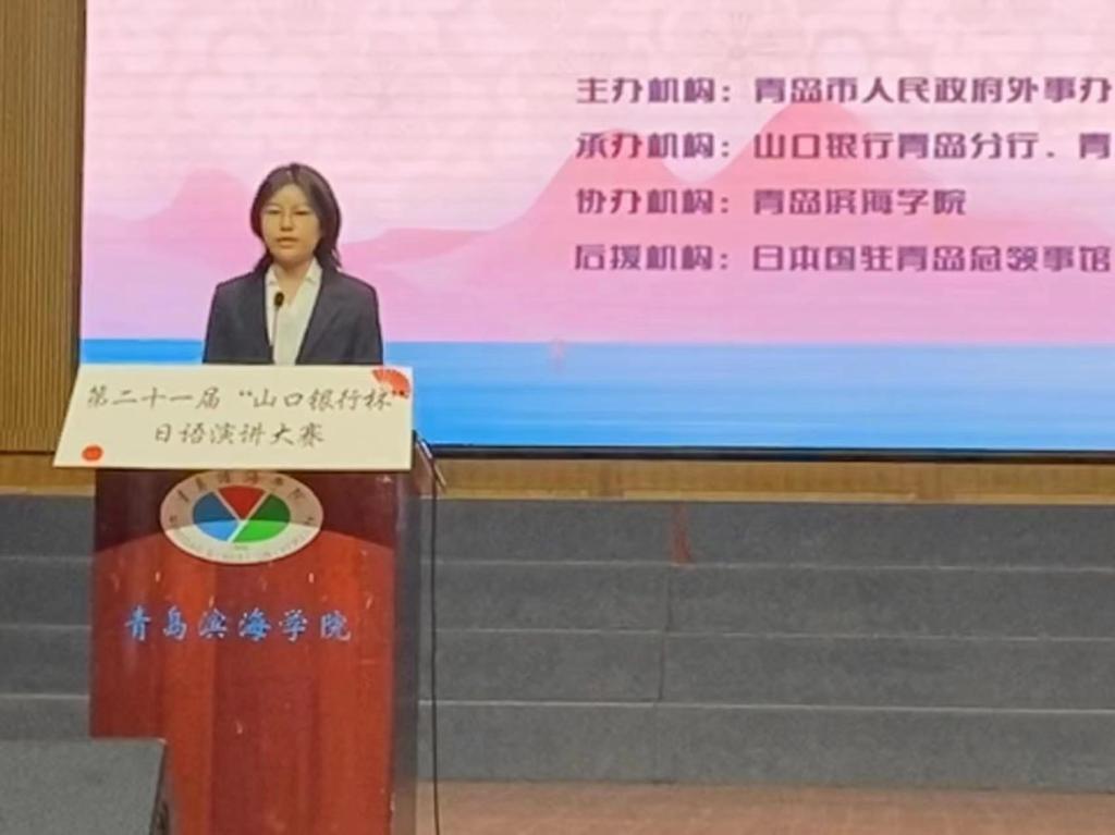 6月3日,第二十一届“山口银行杯”日语演讲比赛大学生组决赛暨大学生团体组预赛在青岛滨海学院成功举行。本届日语演讲大赛由青岛市人民政府外事办公室、青岛市教育局、日本国山口银行株式会社主办,青岛国际交流中心和山口银行青岛分行共同承办,青岛滨海学院为协办,日本国驻青岛总领事馆为后援。