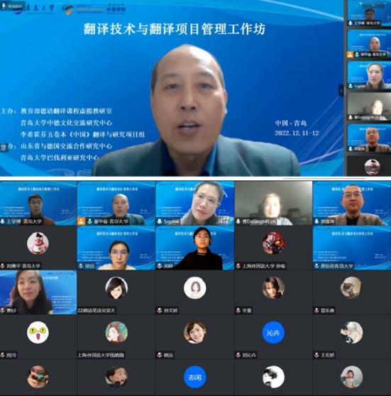 为提升翻译专业教师翻译课程教学和翻译项目管理水平,拓展翻译方向师生的翻译技术知识和翻译实践能力,教育部德语翻译课程虚拟教研室、beat365 官方网站中德文化交流研究中心、李希霍芬五卷本《中国》翻译与研究项目组(以下简称《中国》项目组)以推动山东省社科重大委托项目“李希霍芬五卷本《中国》翻译与研究”为目标,于2022年12月11-12日在线举办两场“翻译技术与翻译项目管理工作坊”。来自beat365 官方网站、上海外国语大学、四川外国语大学、河南大学、青岛科技大学、青岛城市学院等高校的师生及项目组成员近120人次参加工作坊。